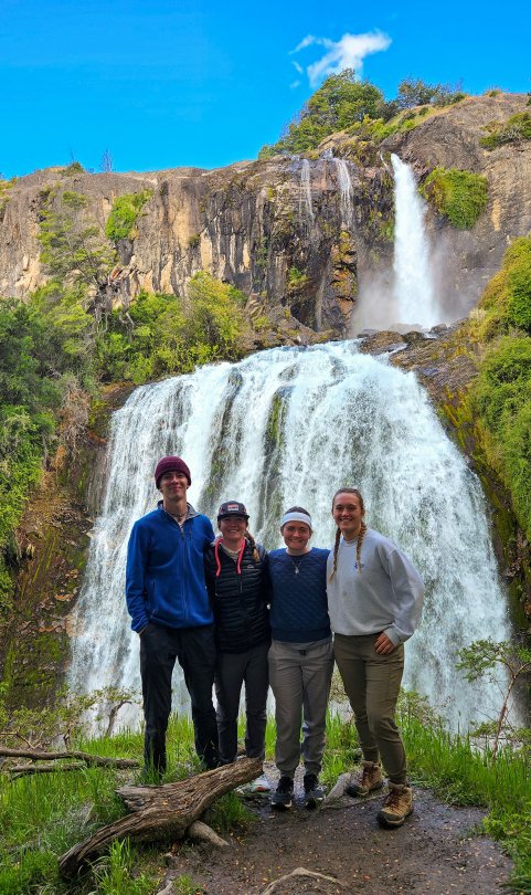 Bishops Abbie Kline '24 of Fombell, Pennsylvania; Grace Luxon '26 of Dallas, Texas; Jack Payne '26 of Columbus, Ohio; and Etta Pierce '26 of Arlington, Vermont, traveled to South America for 12 days in January to learn about conservation in Aysén, Chile.