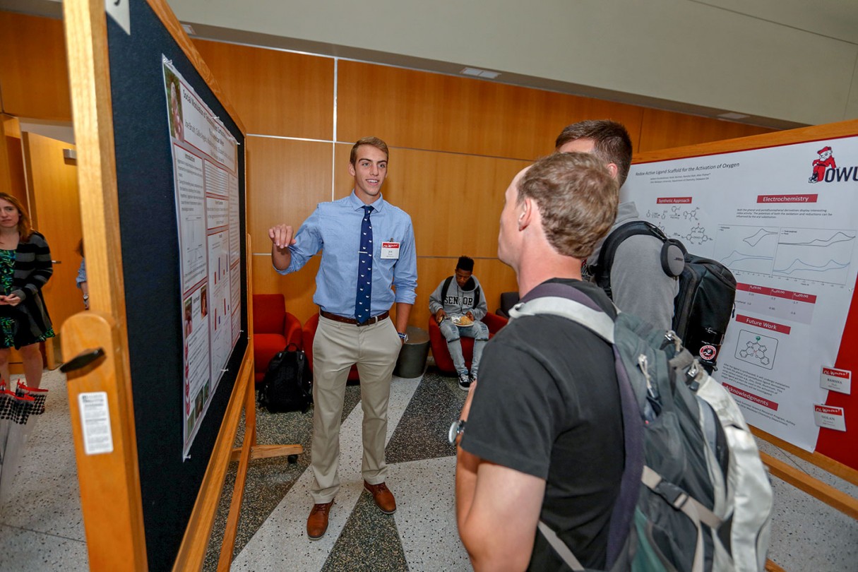 - Jackson Druckenbroad of Powell, Ohio; Nolan Norman of Cincinnati, Ohio; and Ramsha Shah of Karachi, Pakistan, presented “Redox Active Ligand Scaffold for the Activation of Oxygen.” They were mentored by Allen Pistner, OWU assistant professor of chemistry.