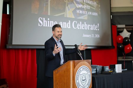 The annual Staff Council-sponsored event was renamed this year as SHINE and Celebrate, with SHINE standing for Service, Honor, Impact, and Noteworthy Experience. "We like a good acronym at Ohio Wesleyan, don't we?" vandenBerg quipped before he turned to the serious and significant work of announcing the 2025 staff awards.