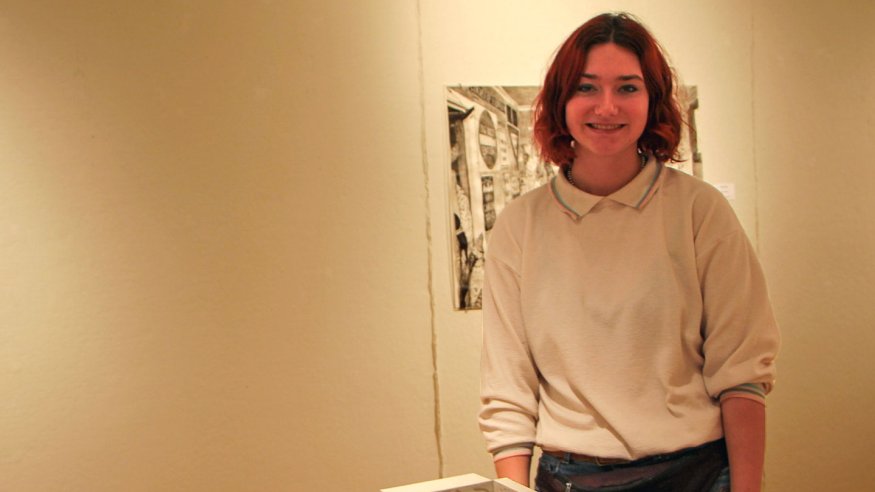 Of her drawing, Davis said: “When I first started, I felt really overwhelmed. … I was focusing too much on the tiny details instead of the big picture. I talked to my professor, Frank Hobbs, and told him I wasn't feeling motivated or inspired. He gave me a pep talk and showed me some different techniques that helped to engage my mind again.”