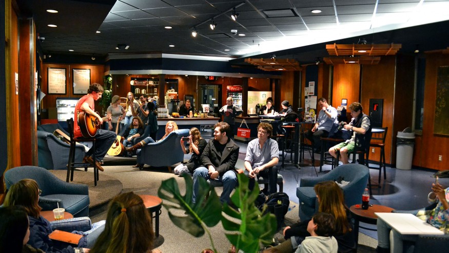 OWU’s Culture Café in Beeghly Library offers a nice venue for student musicians, poets, and performance artists. (Photo by Spenser Hickey ’15)