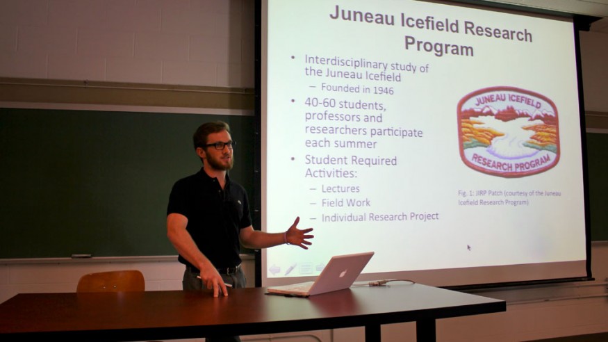 Several researchers, faculty members, and students were engaged and educated as Ohio Wesleyan senior Zeke Brechtel ’13 discussed how he was going to study katabatic wind flows—wind caused by the downward motion of cold air—on the ice fields of Juneau, Alaska.