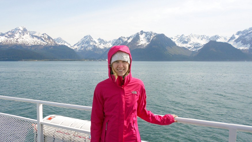 Whitney Lonnemann ’15 was among a group of OWU students who visited Alaska’s Matanuska Glacier over the summer as part of a Travel-Learning Course. Taught by Craig Jackson, Ph.D., associate professor of mathematics and computer science, the course examined “Mathematical Models of Climate.” (Photo courtesy of Whitney Lonnemann ’15)