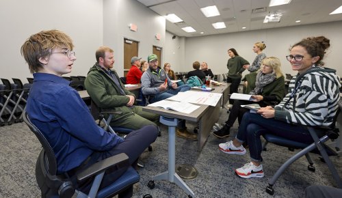 On a recent afternoon, three of Fink's students – sophomores Quinn Dachisen of Stanhope, New Jersey; Aaron Gonzales of Richfield, Ohio; and Alyssa Markell of Leesburg, Virginia – presented the findings of their class's audit to an audience of Delaware Public Health District, City of Delaware, and SourcePoint workers.