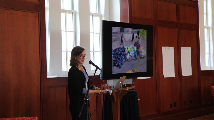 OWU student Shaoyin Sun, a junior psychology and environmental studies double major from Shanghai, presented findings from a survey of Ohio Wesleyan’s East Asian students on their perceptions of waste. She discussed specifics of the waste-related habits of East Asian students on campus, as well as their home country’s cultural contribution to the construction of these habits. (Apparently, many survey responders noted that “Americans take very long showers.”)