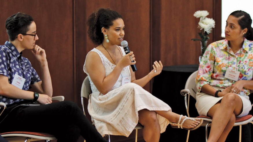 Two panels focused on how women have become leaders in their fields. “You have to just dive into it,” says Julie Podolec ’07, who started a frozen fruit-bar company in southern California with her husband. She was a stay-at-home mom when she decided to make fruit pops for her teething young son after searching for some without extra sugar.